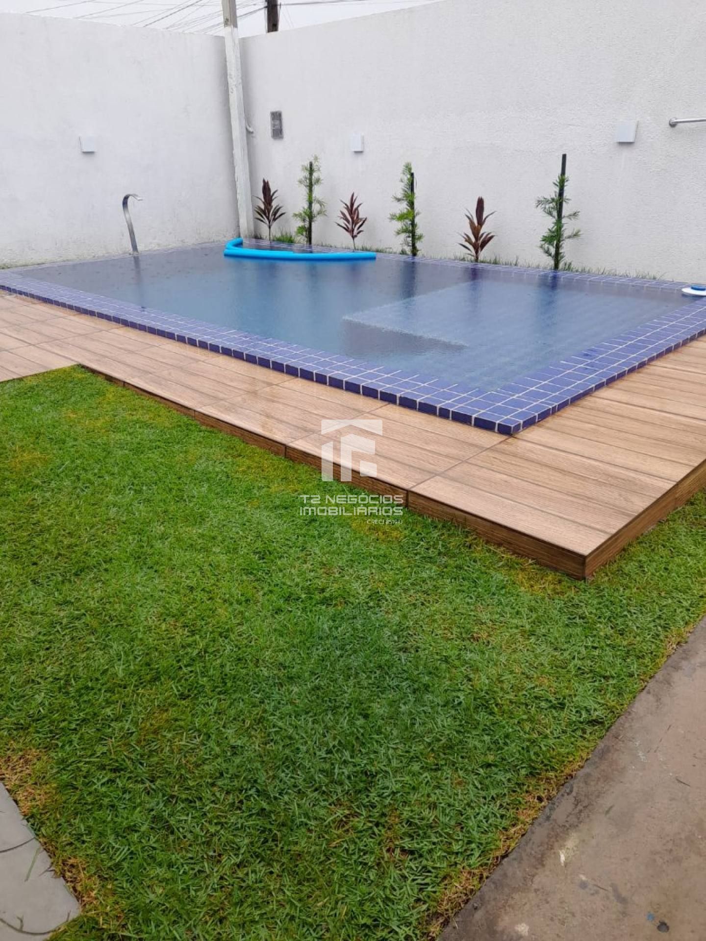 -Piscina de alvenaria com deck e lavabo externo